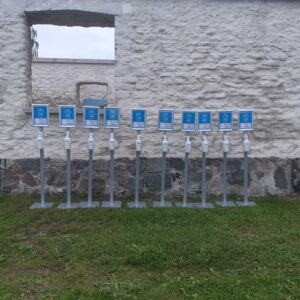 Asennusta varten on tarpeen tilata lisää peruskiviä: Betoninen peruskivi puutarhaan (37kg) tai PVC-peruskivi puutarhaan (17kg). Ja kiinnitysklipsi